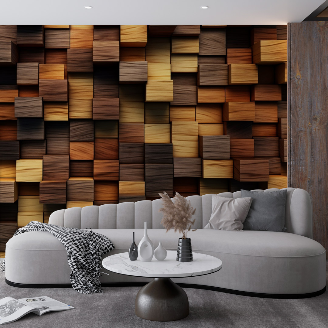 3D tapeta realistično prikazuje drvo, sa bogatim detaljima i dubinskim efektom daje moderan i prirodan izgled zidu.