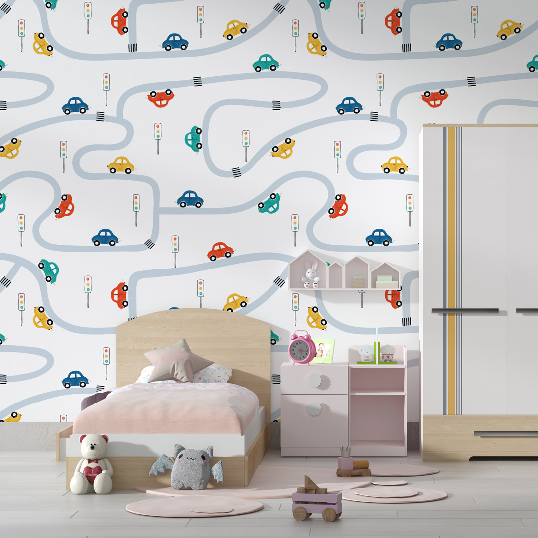 Detalj tapete sa ilustracijom autića