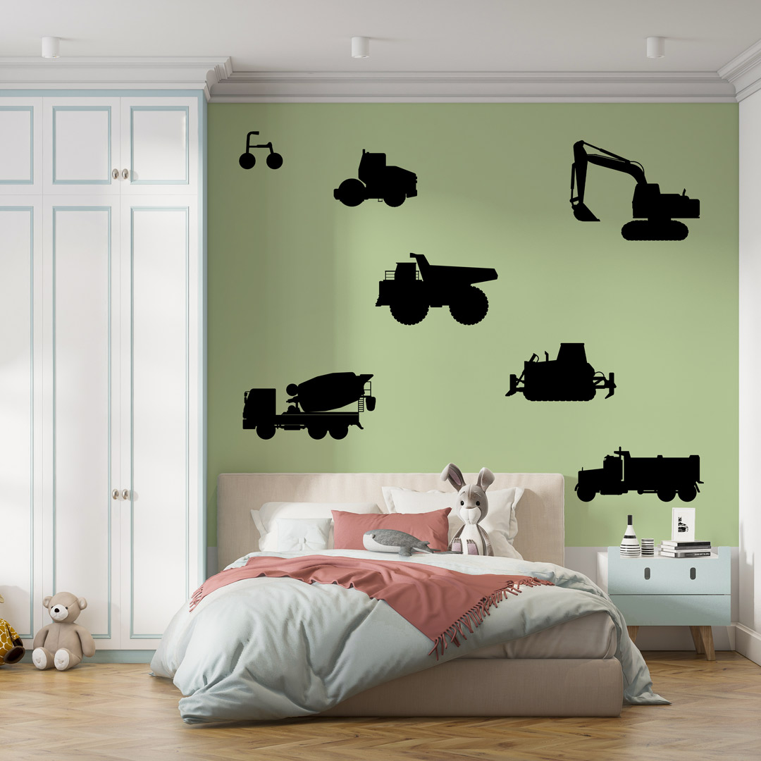 Dečija foto tapeta sa motivom bagera namenjena je razigranom i tematskom uređenju prostora.