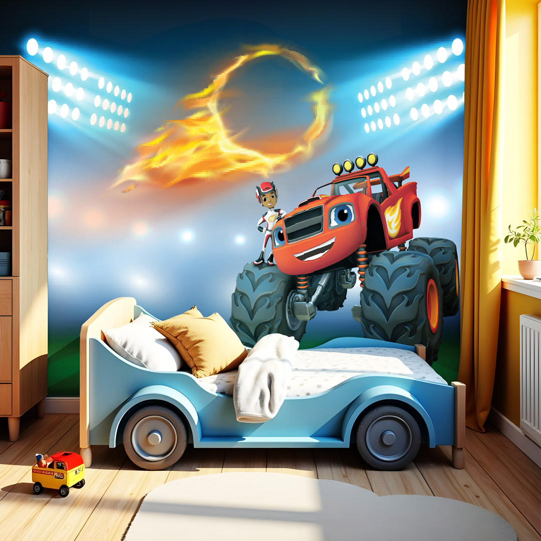 Dečija foto tapeta sa Blejz motivom savršena je za decu koja vole trke i brzinu.