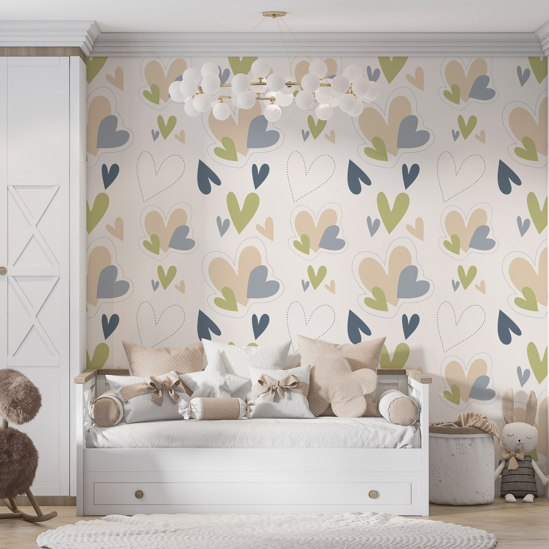 Dečiji patern sa srcima stvara topao i nežan ambijent.