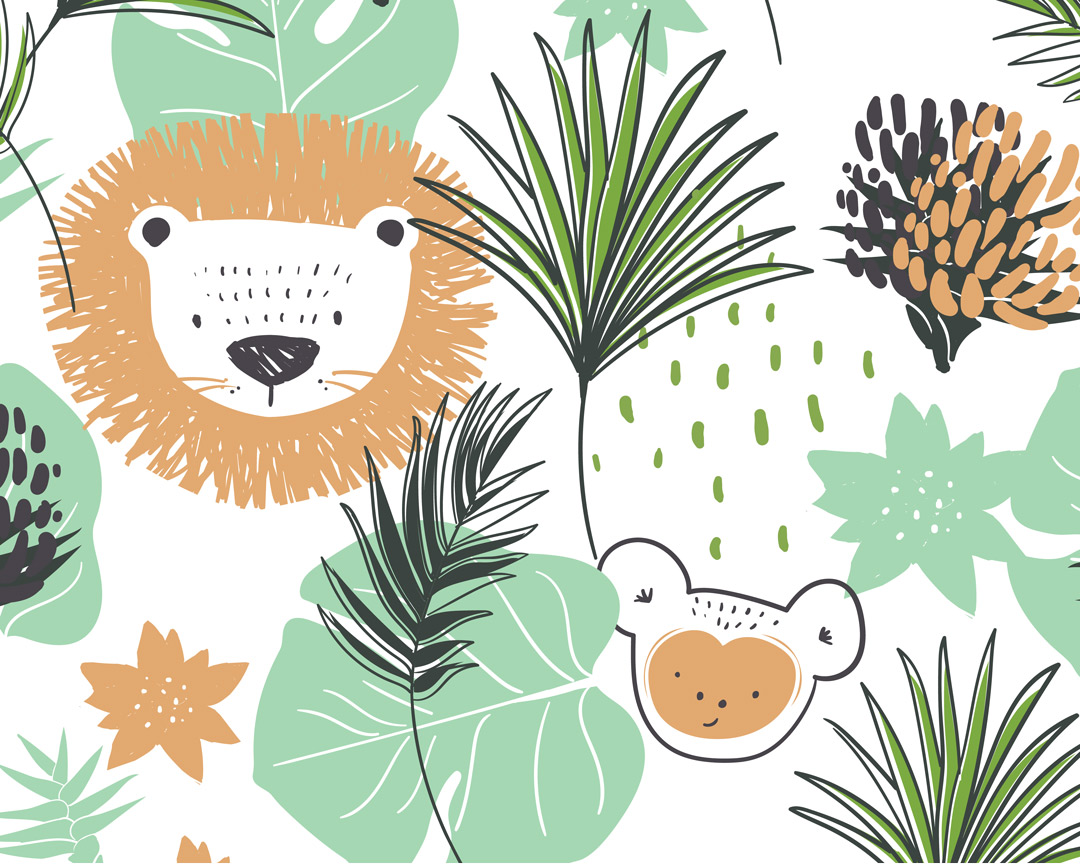 Dečiji patern sa životinjama iz džungle unosi razigran i prirodan karakter u prostor.