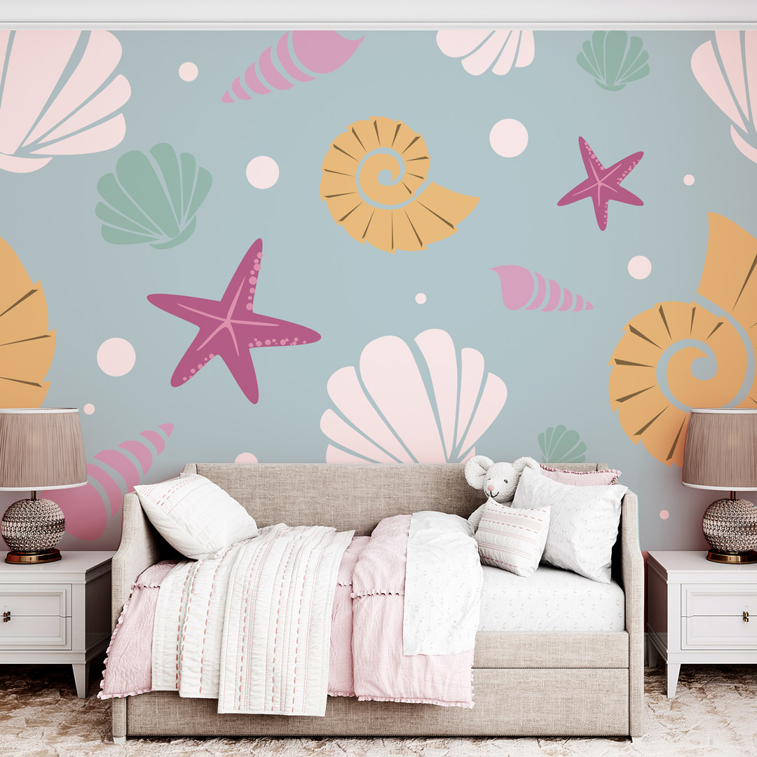 Dečiji patern sa školjkama i morskim zvezdama donosi nežan morski duh u prostor.