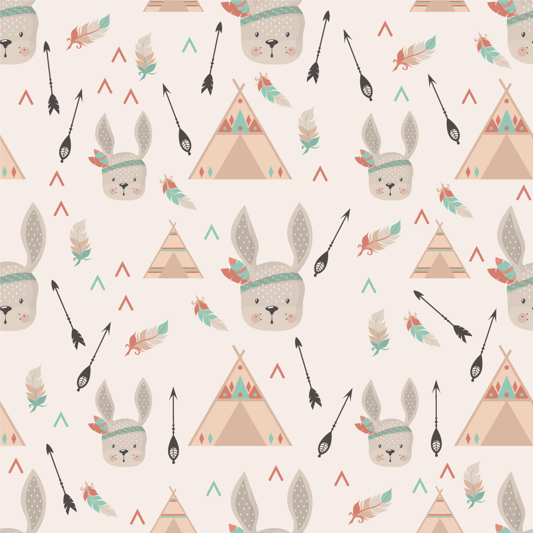 Dečiji patern sa šatorima, strelicama i zekom unosi avanturistički duh u prostor.