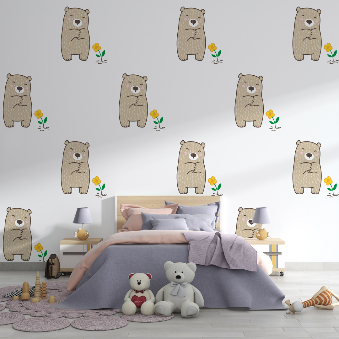 Dečija foto tapeta sa motivom mede donosi toplinu i osećaj sigurnosti u prostor.