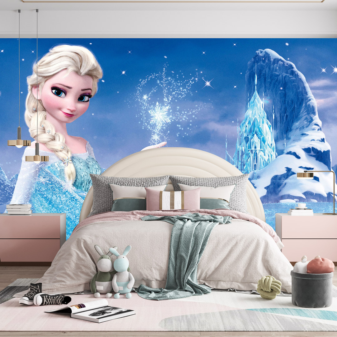 Dečija foto tapeta sa motivima iz crtanog filma Frozen stvara svetlu i bajkovitu atmosferu.