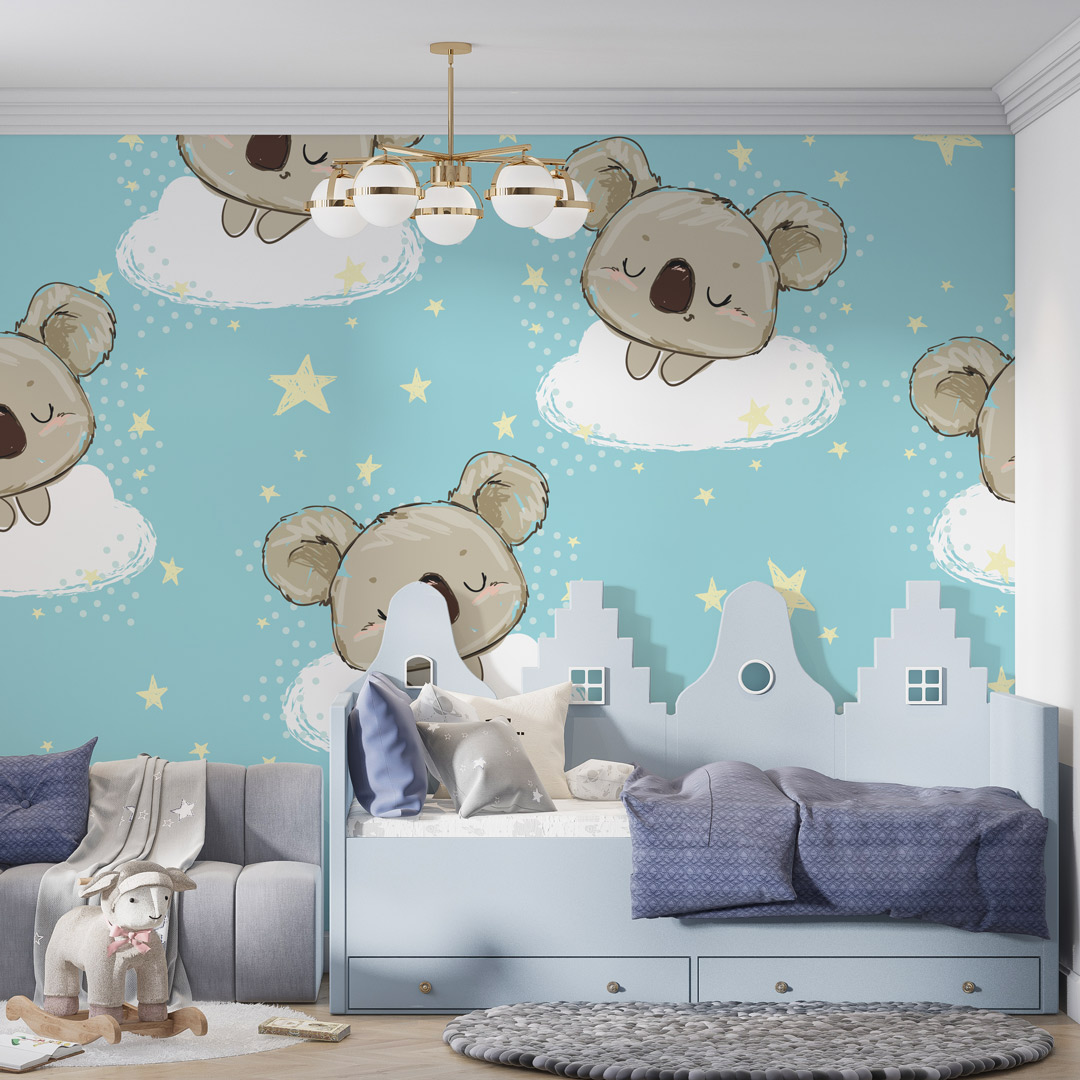 Dečija foto tapeta sa motivom koala stvara umirujuću i nežnu atmosferu.