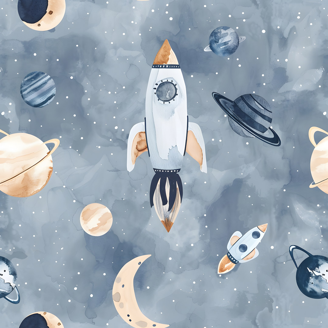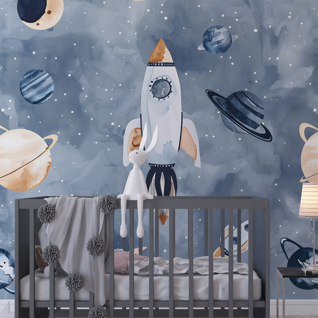 Dečija foto tapeta sa motivom kosmosa donosi svemirski ambijent u prostor. Idealna je za decu koja vole planete, zvezde i istraživanje svemira, stvarajući maštovitu atmosferu.