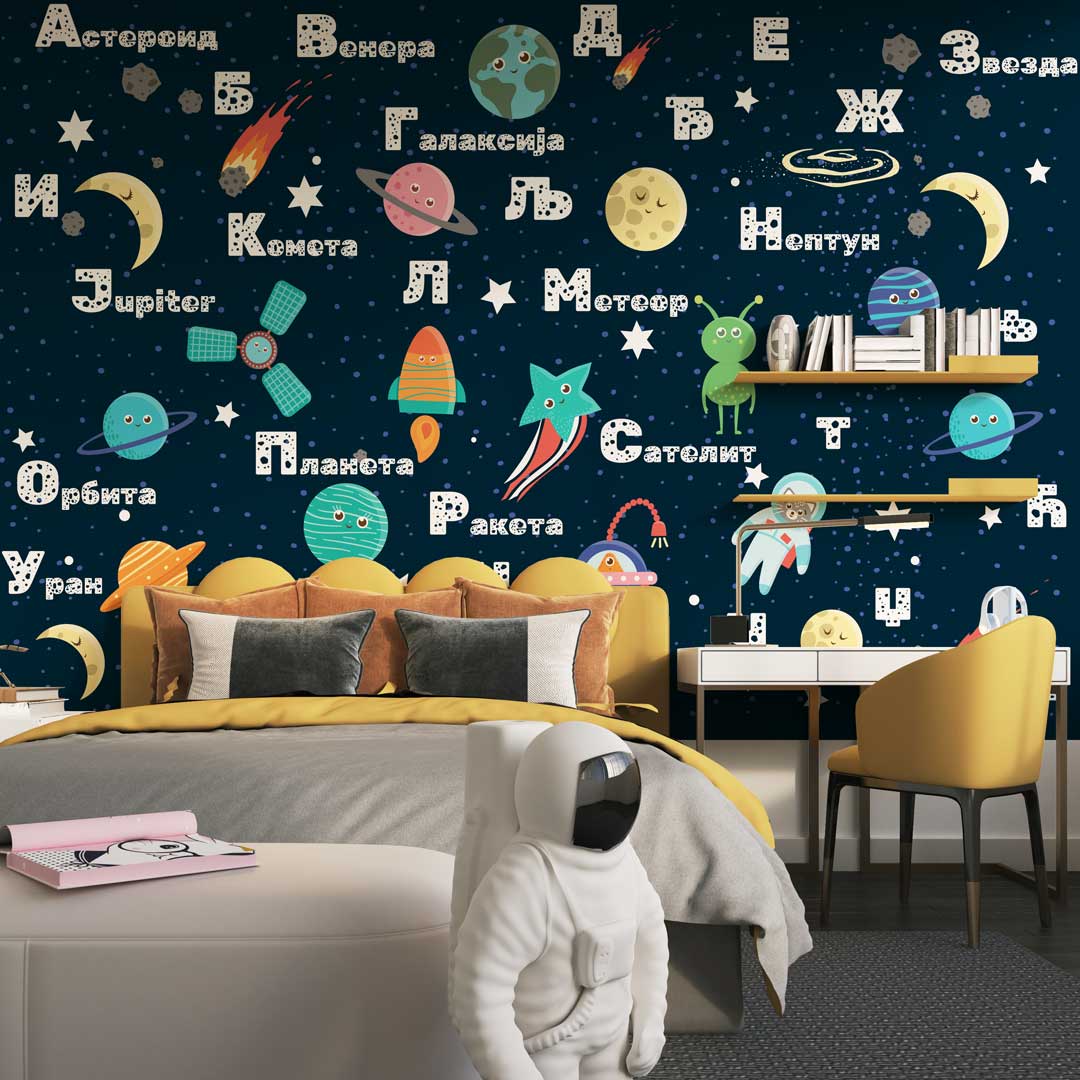 Foto tapeta sa motivima planeta i svemira savršen je izbor za stvaranje edukativnog i inspirativnog prostora. Dizajn približava deci svet astronomije kroz boje i oblike planeta.