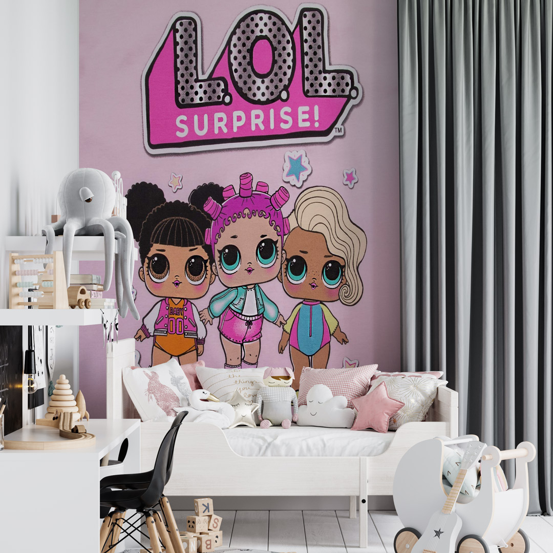 Foto tapeta sa motivima LOL lutaka namenjena je modernom i razigranom uređenju dečije sobe.