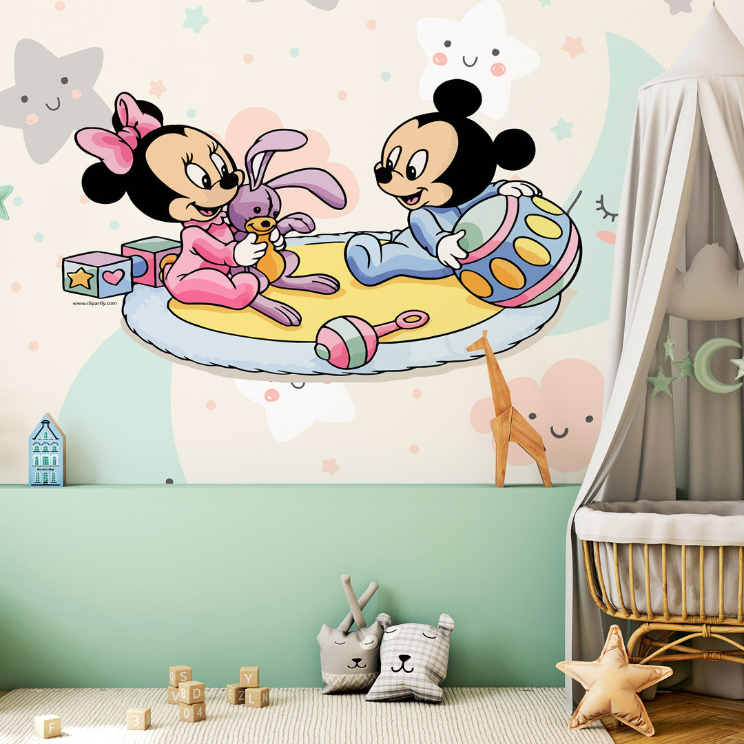 Dečija foto tapeta sa motivom Miki Mausa donosi klasičan crtani stil u dečiju sobu.