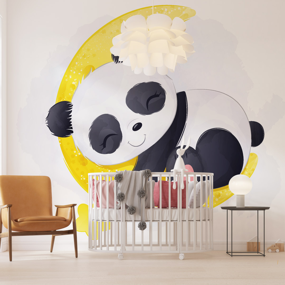 Foto tapeta sa motivom pandi unosi prirodnu harmoniju u dečiji prostor.