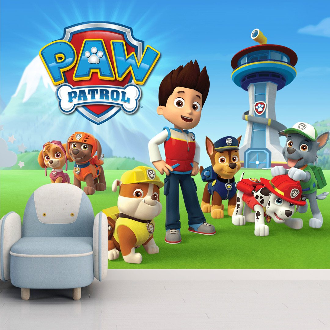 Dečija foto tapeta sa motivima Patrolnih šapa unosi razigranu i veselu atmosferu u dečiju sobu.