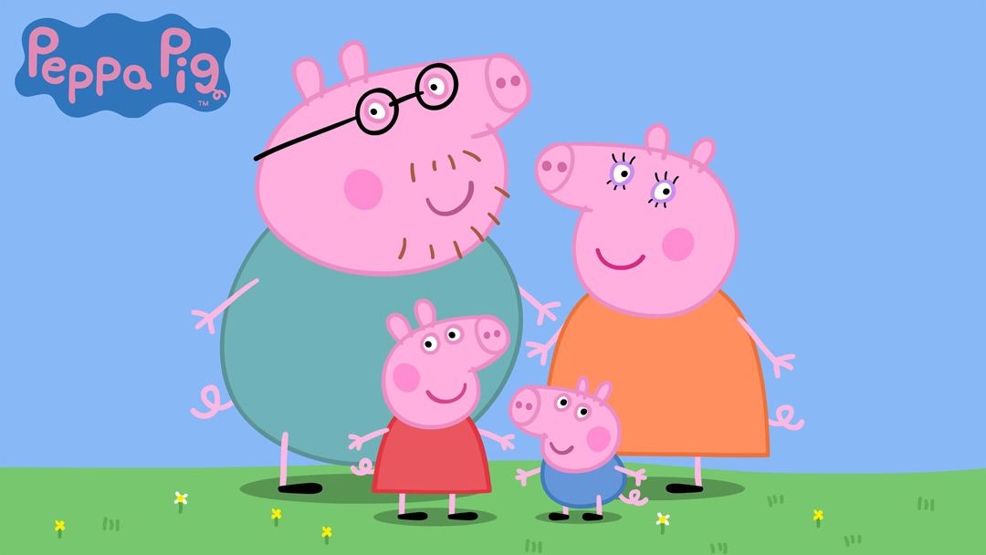 Dečija foto tapeta sa motivom Pepe Praseta stvara toplu i razigranu atmosferu u dečijoj sobi.